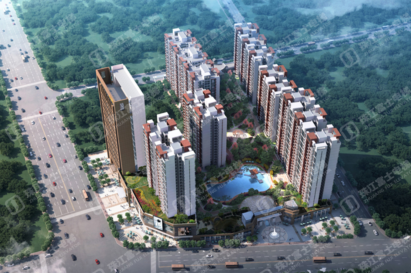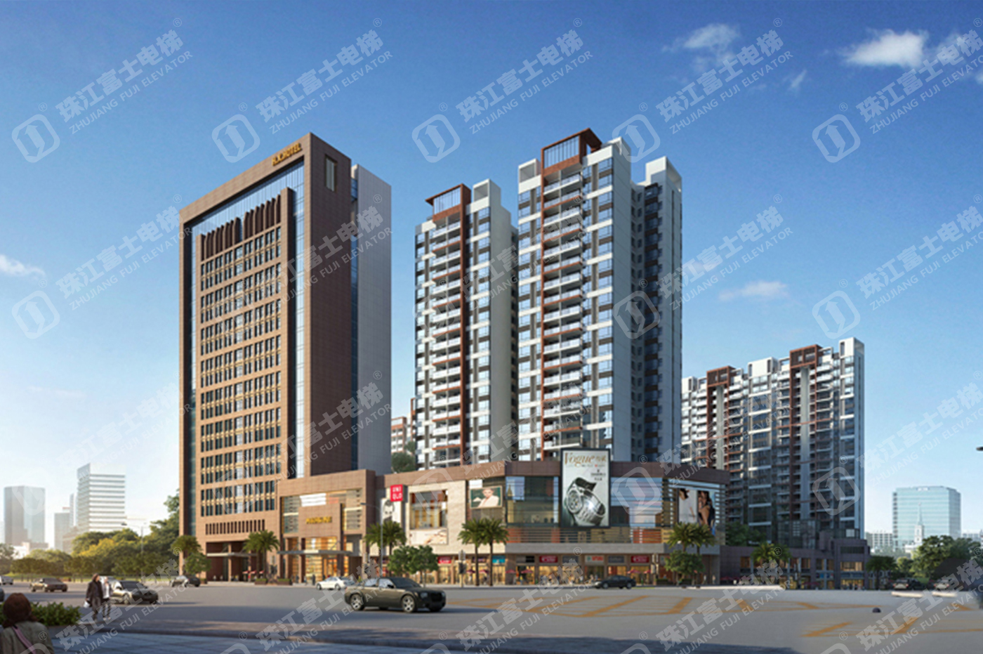 珠江富士電梯為該項(xiàng)目提供了22臺(tái)電梯產(chǎn)品:16臺(tái)GSTK1050kg、1.75m/s的高速乘客電梯,6臺(tái)GSTK1050kg、1.6m/s的無(wú)機(jī)房乘客電梯。